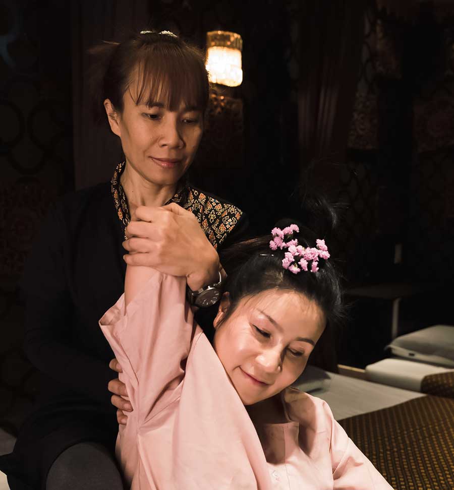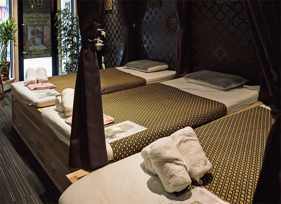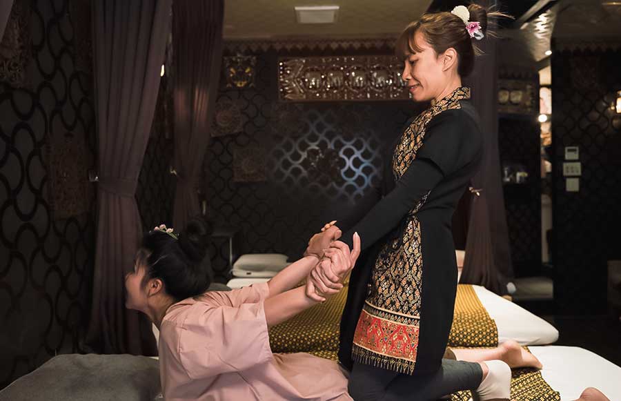 当店では、タイ古式マッサージのプロの資格を有するタイ人セラピストが施術を行っております。タイ古式マッサージは、局所的に施術をするのではなく、時間をかけゆっくり全身を施術していくのが特徴。身体全体の血液とリンパ液の流れを活性化させ、疲労の回復、退室改善を図ります。お客様のご要望に応じた細やかな施術を心がけております。腰・肩・首が痛いなど、ぜひお気軽に体の悩みをお聞かせください。